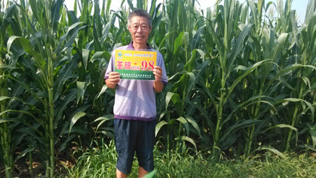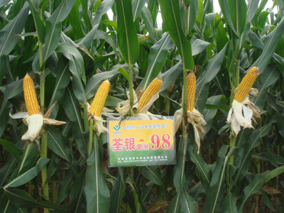 特征特性:該品種為早熟品種,夏播生育期95天,活稈成熟。 株型緊湊,株高250cm,穗位100cm左右,穗長20cm 左右,穗粗5.0cm左右,穗行數16行。白軸,半硬粒型,軸細粒深,出籽率90%以上。