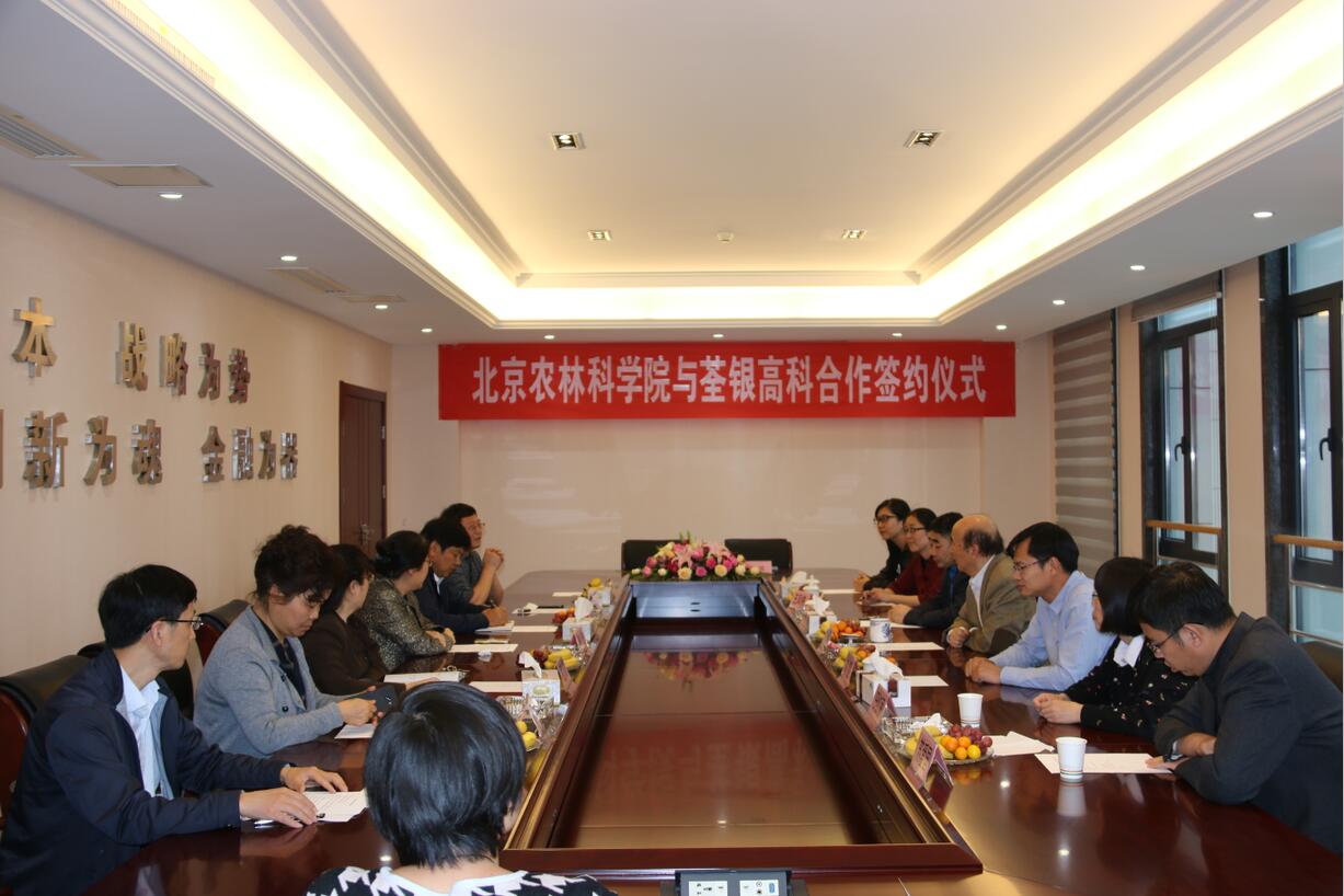 ? ?2017年4月20日下午,荃銀高科與北京農林科學院簽約儀式在公司總部順利舉行,雙方就玉米科研育種及品種開發達成合作。中國種子協會副會長兼秘書長李立秋,北京農林科學院玉米研究中心主任趙久然及其團隊代表,荃銀高科董事長張琴,副總經理張從合、王瑾、葉紅等出席了簽約儀式,會議由公司副總經理朱全貴主持。