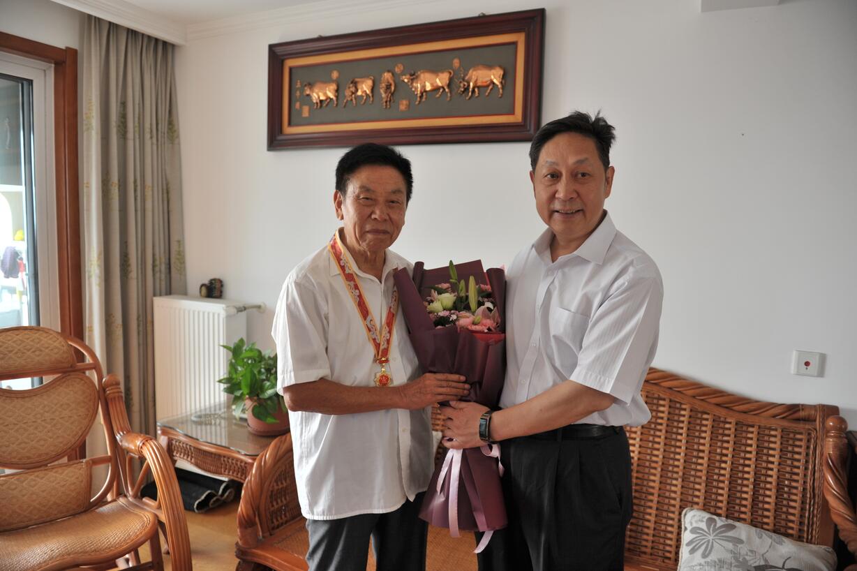 ??? 近日,中共中央、國務院、中央軍委聯(lián)合向全國頒發(fā)“慶祝中華人民共和國成立70周年”紀念章活動,以慶祝中國人民共和國成立70周年。9月25日,安徽省科學技術獎勵工作辦公室劉瑞奇主任一行代表安徽省人民政府,將“慶祝中華人民共和國成立70周年”紀念章頒發(fā)給“中國種業(yè)十大功勛人物”、安徽荃銀高科種業(yè)股份有限公司創(chuàng)始人、安徽張海銀種業(yè)基金會理事長張海銀先生,并送上鮮花,轉達了黨和政府的親切慰問與關懷。