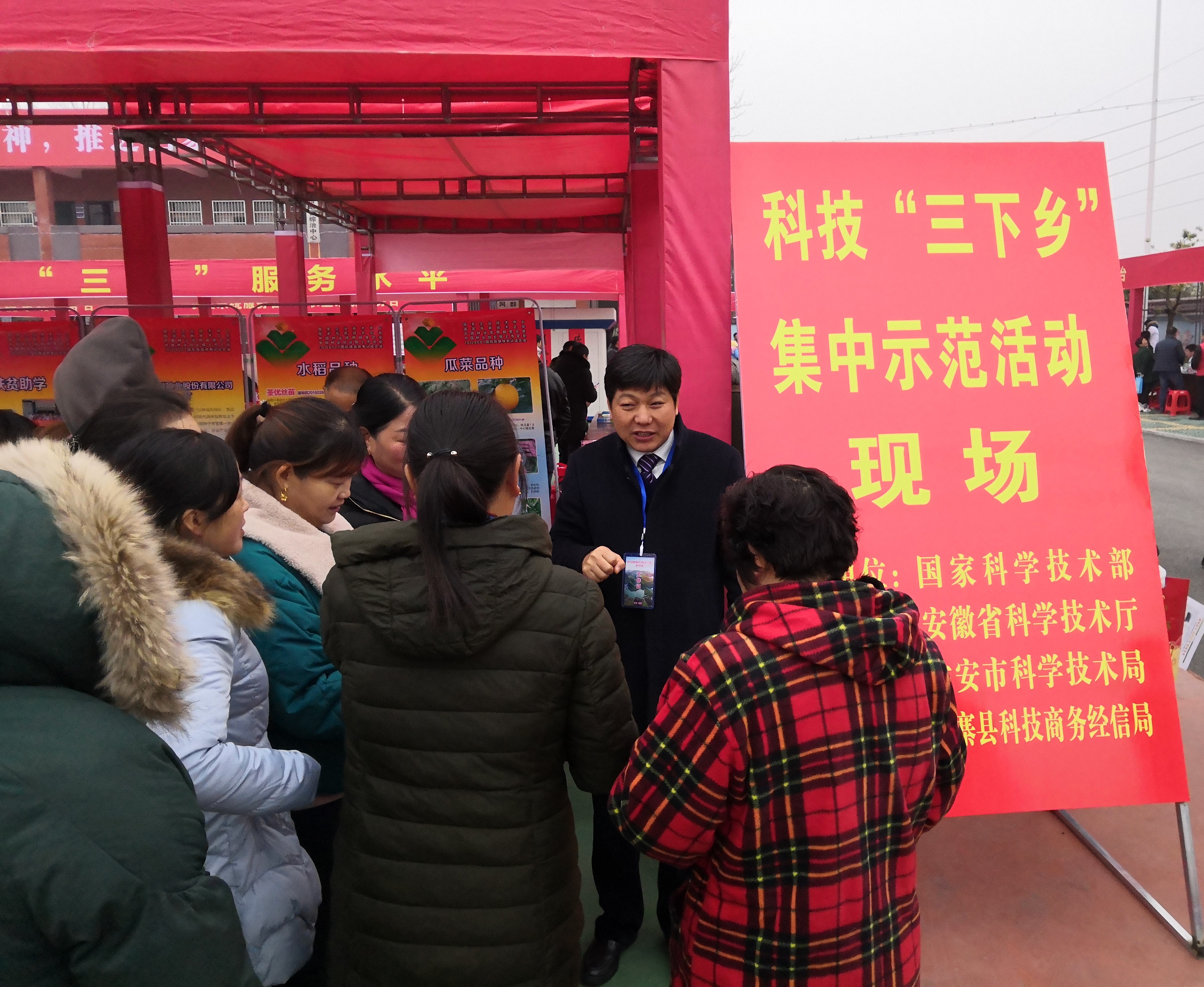 ? ? 2019年12月30日,由國家科學技術部和安徽省委、省政府主辦、安徽省科學技術廳承辦的2020年全國暨安徽省文化科技衛生“三下鄉”集中示范活動在六安市金寨縣白塔畈鎮舉行。科學技術部黨組成員陸明、安徽省科技廳黨組書記宛曉春、科學技術部引智司副司長李勇、科學技術部交流中心副主任莊嘉、科學技術部農村中心副主任孫傳范以及科技部、安徽省和六安市相關單位領導參加了本次活動。荃銀高科積極參加本次活動,為老區人民送去良種和良法。